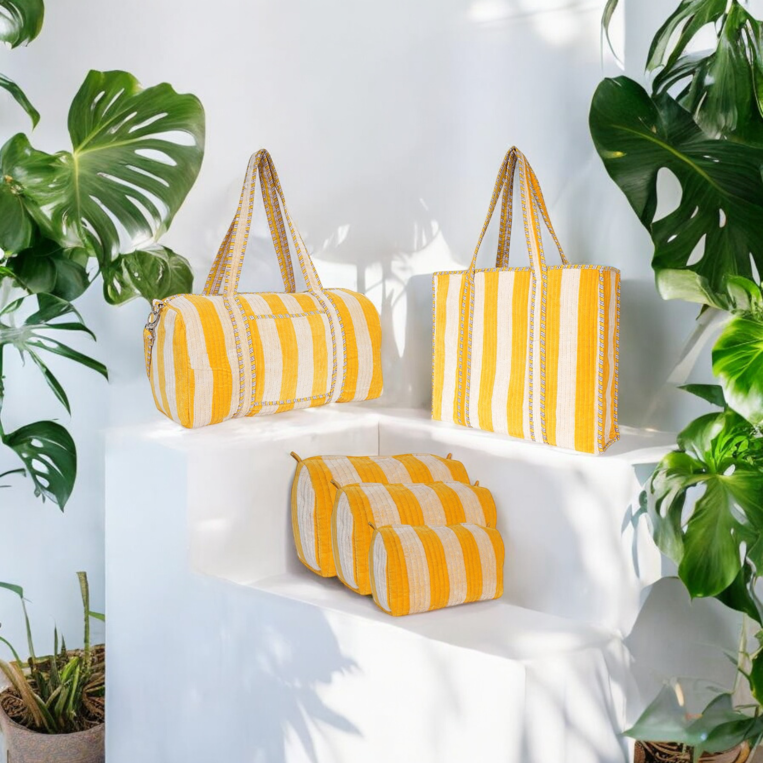 Every Striped Weekender is handmade from soft, durable quilted cotton by skilled artisans in India. This bag doesn’t just look good—itdoesgood too: 10% of every purchase goes back to grassroots initiatives supporting local communities. Ethically crafted, beautifully bold, and built to make an impact—because style means more when it gives back.