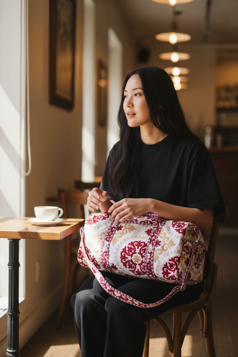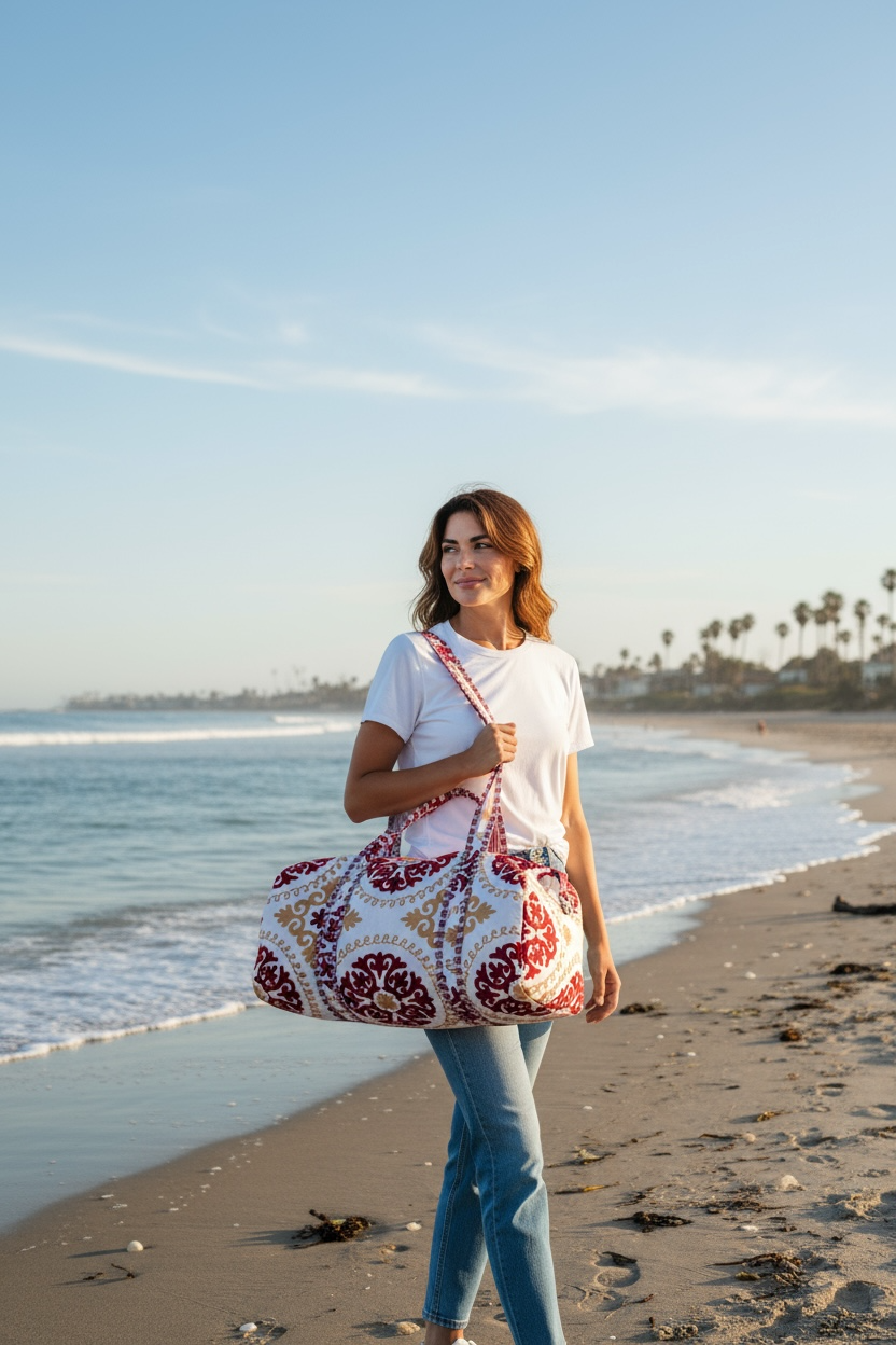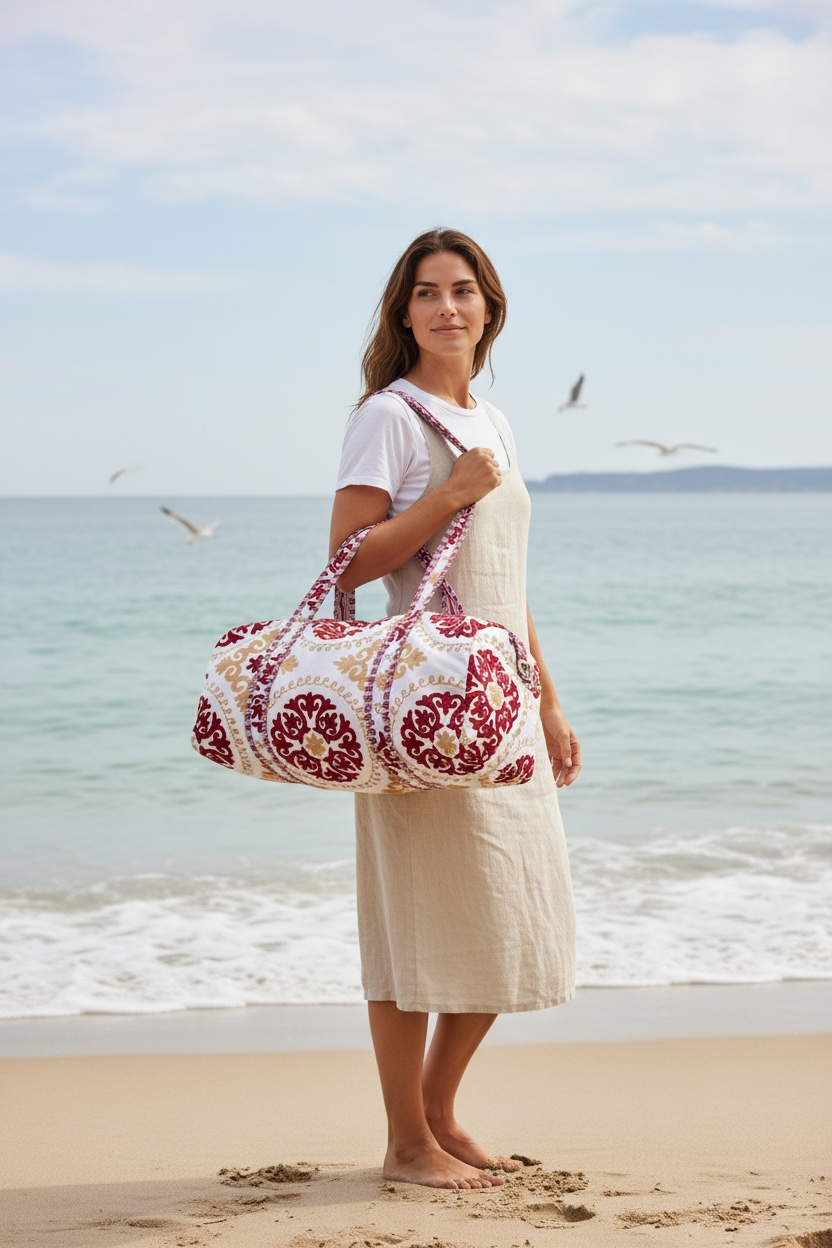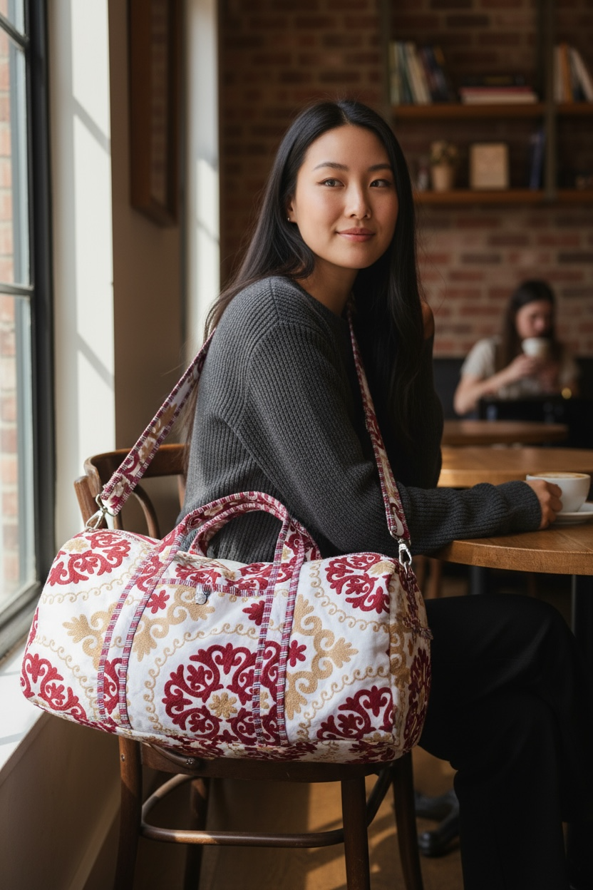 Every Suzani Weekender is handmade from soft, durable quilted cotton by skilled artisans in India. This bag doesn’t just look good—itdoesgood too: 10% of every purchase goes back to grassroots initiatives supporting local communities. Ethically crafted, beautifully bold, and built to make an impact—because style means more when it gives back.